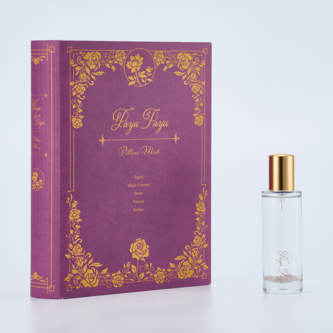 このブルガリアンローズウォーターにはローズオイルが飽和状態で含有されています。ローズオイルは「液体の金」とも呼ばれる大変高価で貴重なものです。ブルガリアンローズウォーターを加えることで、香りにコクや広がり、深み、温かさが加わります。ブルガリアンローズウォーターによって上質の香りをさらにグレードアップした「Paya Paya ピローミスト」は、リラックスタイムや心地よい眠りのための空間を極上に仕上げ、優しいメッセージとともに、心と体を癒します。誰のためでもない自分を大切にするための香り。あなたのリラックスタイムに、おやすみになる空間のために、妖精の優しいメッセージで包まれた贅沢な空間演出をお楽しみください。