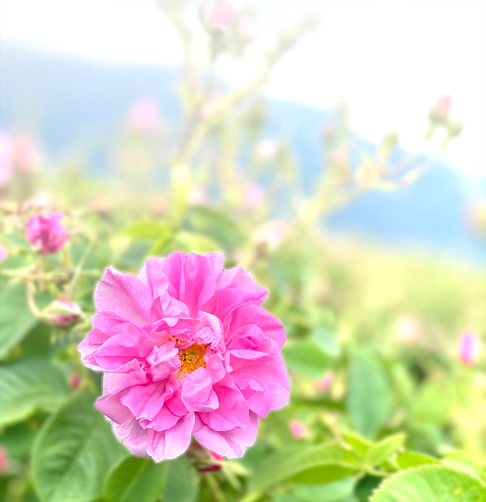 「Paya Payaピローミスト」は、調香師によって作られた最高級の空間演出のための香りです。香料には上質な香水素材を使用しています。さらにその香りには有機JAS認証を取得したブルガリア産の有機ダマスクローズウォーターを加えています。有機ダマスクローズウォーターは、ブルガリアのカザンラクにある弊社指定農場で有機栽培されたダマスクローズから、水蒸気蒸留で抽出された貴重なローズウォーターです。そのローズウォーターはEUによる地理的表示保護(PGI)により厳選されたものだけにのみ許可された名称「ブルガリアンローズオイル」が飽和状態で溶け込んでいる特別なローズウォーターです。